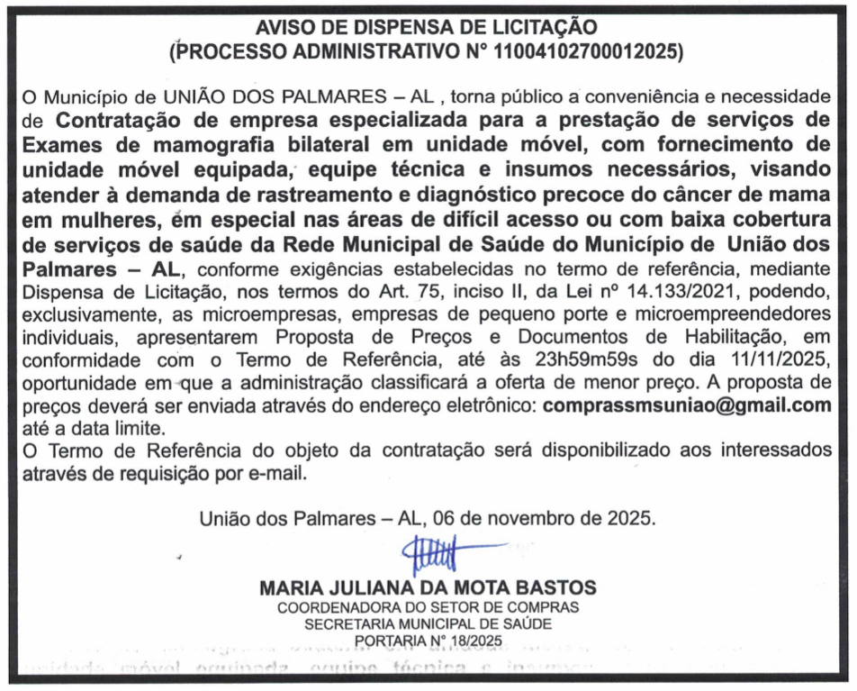 O PREFEITO DE UNIÃO DOS PALMARES, ALAGOAS, no uso da atribuição que lhe confere a Lei Orgânica Municipal;