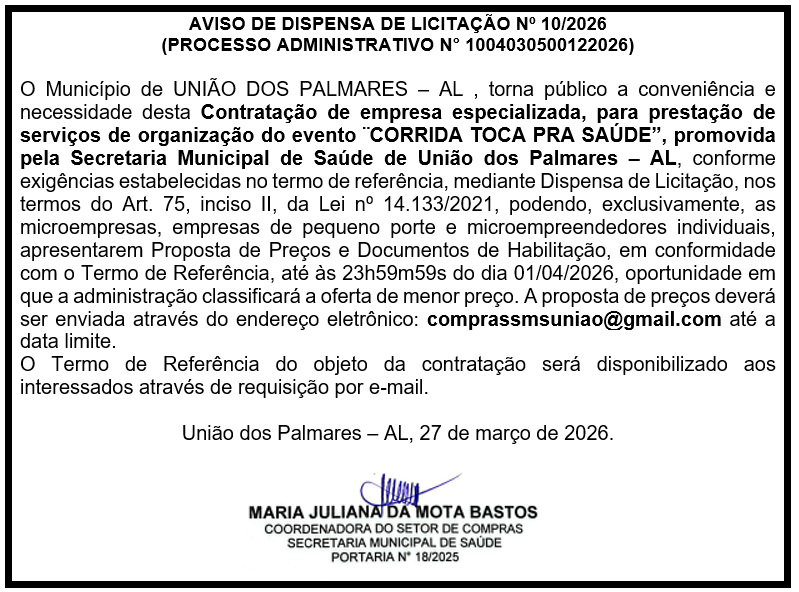 AVISO DE DISPENSA DE LICITAÇÃO Nº 10/2026